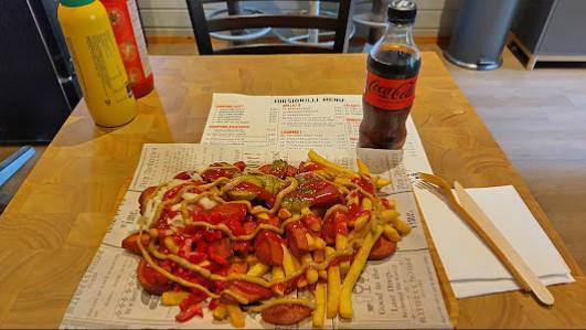 Hampurilaisravintola tarjoaa erilaisia hampurilaisvaihtoehtoja, jotka tuovat vatsaa tyydyttävästi. Makkaraperunat ovat erityisen suosittuja ja hintakin ne ovat kohtalaista.