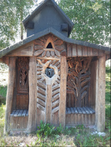 Pohjoisesta - kotiapäin 🚗. Täl kertaa Kaustisen kautta . Wiimeks ku tultiin nii oli enemmän katseltavaa ( taideteoksia ) . Evästeltiin🥯☕ kivimajassa . Satoi kaatamalla pienen tovin.