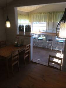 Asiakkaita näytti riittävän PE iltapäivästä ja ruokailutilat siistit, enään ei tarennut terassille.