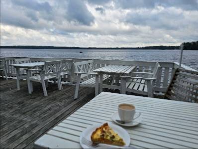 Palvelu on paikan päällä, ja palvelija on erittäin ystävällinen. Koirille on tarjolla vesikuppeja, ja pääsipä koira myös järveen vilvoittelemaan lämpimänä kesäpäivänä.