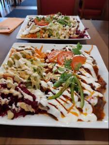 Uskomsttoman hyvät kastikkeet suuret annokset. Hyvä palvelu. Siisti paikka. Aika hyvä palvelu. Saisolla maanantaisinkin auki.