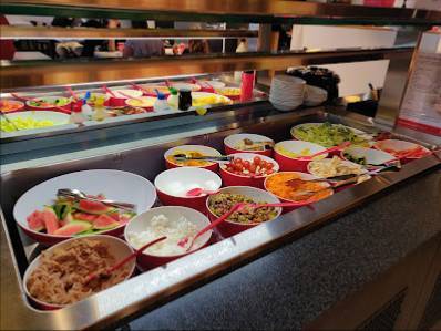 Muut mielenkiintoiset tiedot: Kotiinkuljetus, Noutoruoka, Ruokailu paikan päällä, Lounaspaikka, Illallispaikka, Yksin ruokailu, Esteettömiä istumapaikkoja, Esteetön wc, Alkoholia, Kahvia, Kasvisvaihtoehtoja, Olutta, Ruokaa nopeasti, Syö niin paljon kuin jaksat, Lounas, Illallinen, Jälkiruoka, Istumapaikat, WC, Rento, Opiskelijoita, Ryhmät, Sopii perheille, Turistit, Ottaa vastaan varauksia, Credit-kortit, Debit-kortit, NFC-mobiilimaksaminen, Luottokortit, Lasten ruokalista, Sopii lapsille, Syöttötuolit, Maksuton pysäköintialue, Maksuton pysäköintihalli, Pysäköinti.