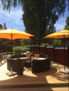 Kaunis miljöö ja ystävällinen henkilökunta. Ruoka tuli nopeasti, vaikka asiakkaita oli paljon. Lehtipihvin syöjä kehui pihviä todella hyväksi. Kananrintaa oli kaksi palaa, joista toinen oli liian kuivaa. Kauden kasvikset olivat vetisiä, purutuntumaa ei ollut ja maku oli kadonnut. Lohkoperunat oli huippuhyviä, ihan oikeita pottuja kuorineen päivineen! Positiivinen kuva kaikkiaan jäi ja olisinhan minä voinut syödessäni valittaa, varmasti olisin saanut uuden annoksen.