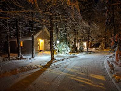 WiFi on hyvä, televisio on tosi pieni (kuka tänne telkkaria tulee katsomaan :–). Pyykinpesukone jaettu kaikkien muiden mökkien kanssa. Vähän ahtaan tuntuinen mökki neljälle hengelle. Nestori –mökki on aivan vilkkaasti liikennöidyn kylätien reunassa ja mm aura-autot herättävät öisin helposti.
